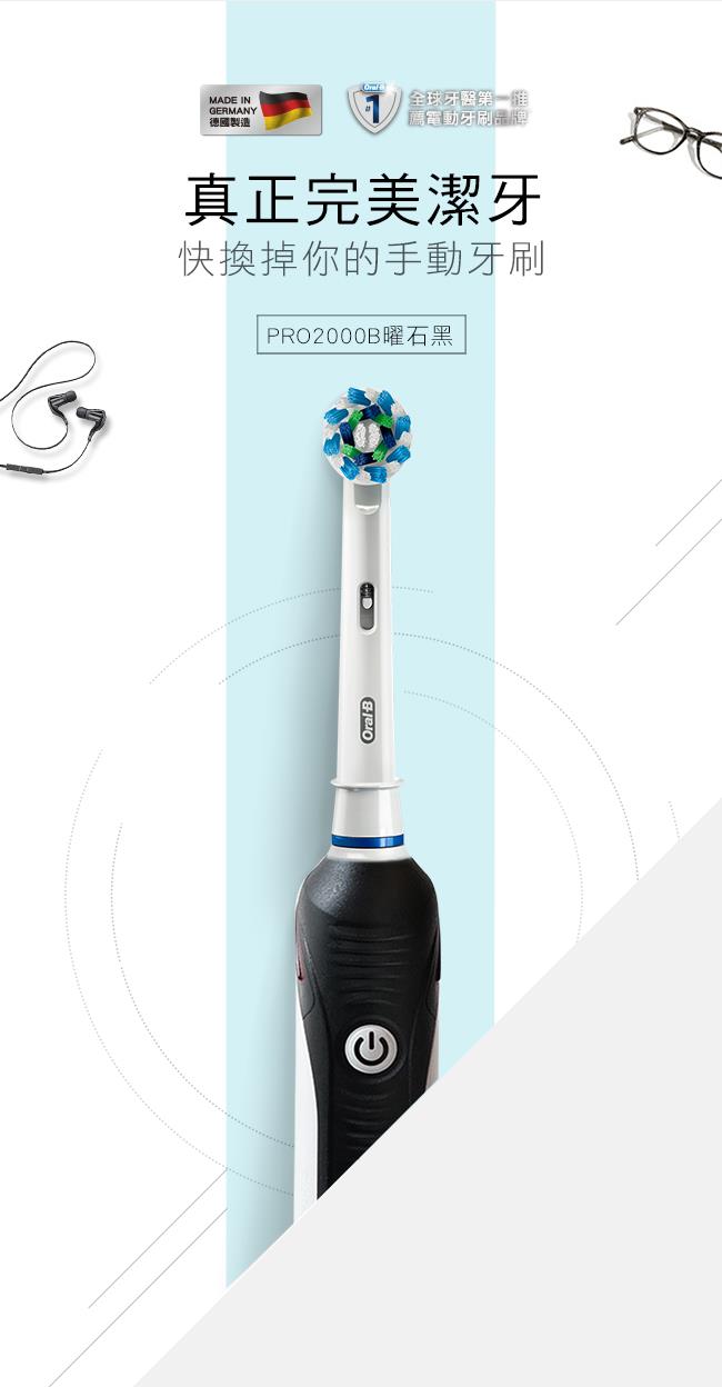 德國百靈Oral-B-全新亮白3D電動牙刷(亮白)PRO2000B